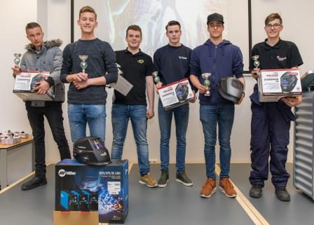 Iets later dan de bedoeling was, was het dan eindelijk tijd voor de prijsuitreiking. Yvonne verklaarde dat er zelfs met halve punten per las gerekend moest worden, zo dicht lagen de uitslagen bij elkaar. Maar uiteindelijk waren het Tim Buurke (Winkler Prins in Veendam) en Valentijn Berlijn (Comenius College in Capelle a/d IJssel) die zich ‘beste vmbo-lasser van Nederland’ mochten noemen. De winnaars mochten een mooie lashelm uitzoeken, en ze kregen een mooie beker. Voor alle kandidaten was er een NIL-medaille en een lasmeetinstrument beschikbaar .