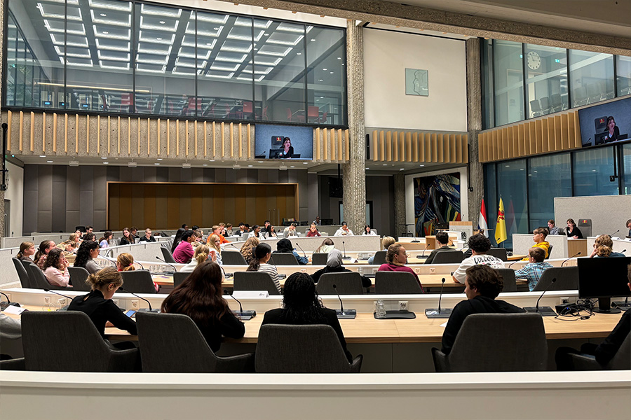 Leerlingen van het Comenius College debatteren in het Provinciehuis in den Haag