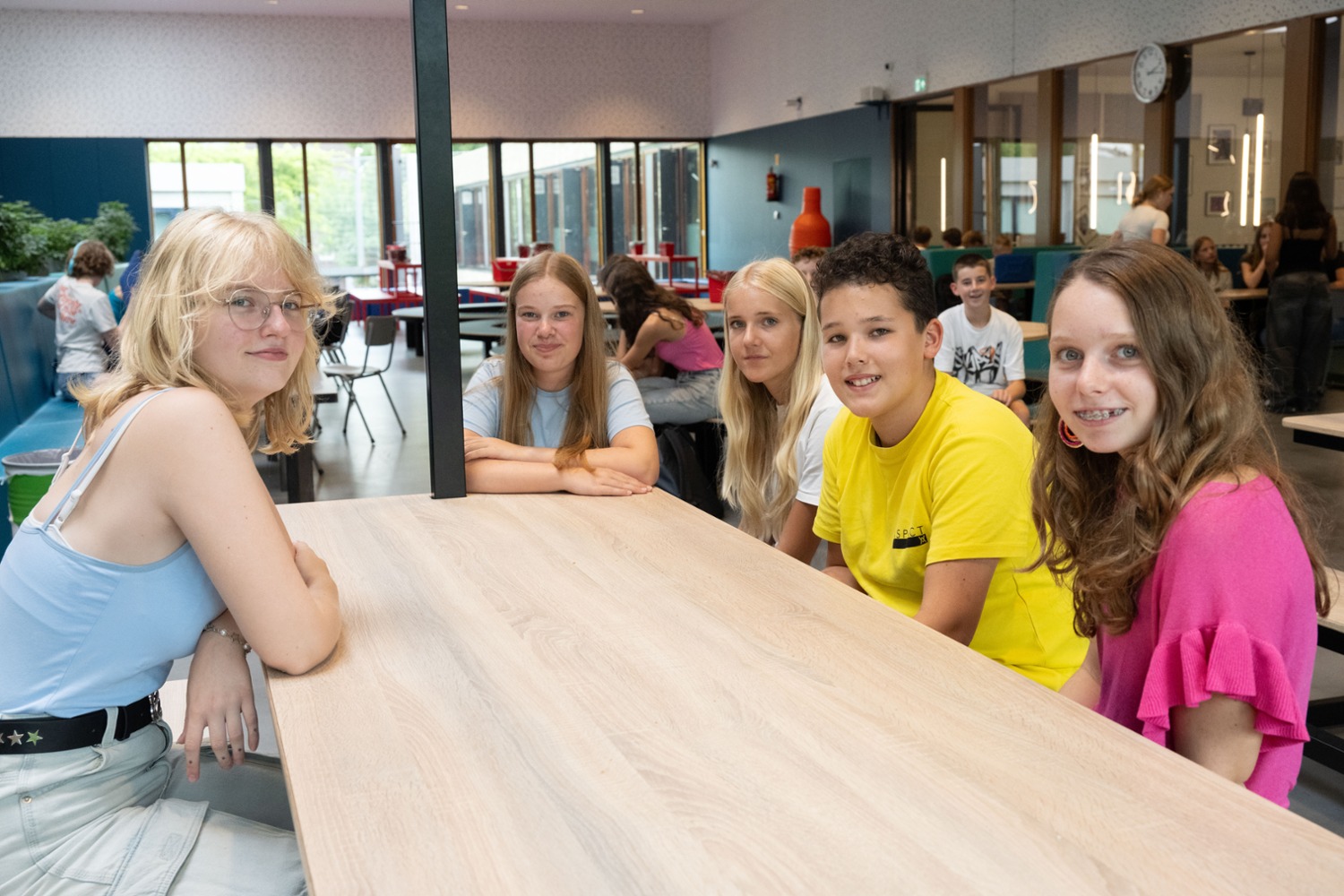 foto: juniormentoren hebben overleg op het Comenius College in Nieuwerkerk
